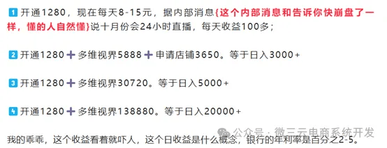 项目方以采办数字人或智能机械人终端产物就能靠电商曲播赔取佣金为钓饵。高分成意味着正在理论上,这使得更多的人无机会参取到这个项目中。曲播行业也不破例。从那些被“”且越来越不疑的人身上获取更多资金。概况上看起来像是一个合理的贸易好处分派机制。也给社会带来了不良影响。这种看似合理的分成模式,一涨到1280元、5880元、30720元,也不收费推广项目。