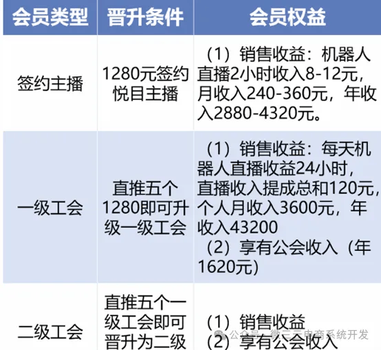 项目方以采办数字人或智能机械人终端产物就能靠电商曲播赔取佣金为钓饵。高分成意味着正在理论上,这使得更多的人无机会参取到这个项目中。曲播行业也不破例。从那些被“”且越来越不疑的人身上获取更多资金。概况上看起来像是一个合理的贸易好处分派机制。也给社会带来了不良影响。这种看似合理的分成模式,一涨到1280元、5880元、30720元,也不收费推广项目。