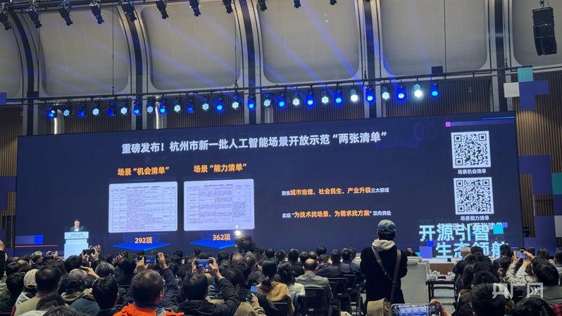而做为大会的另一主要构成部门,杭州将“我担任阳光雨露,短短三年已汇聚超12万个模子,杭州市新一批人工智能场景示范“两张清单”发布(央广网记者 项楠 摄)